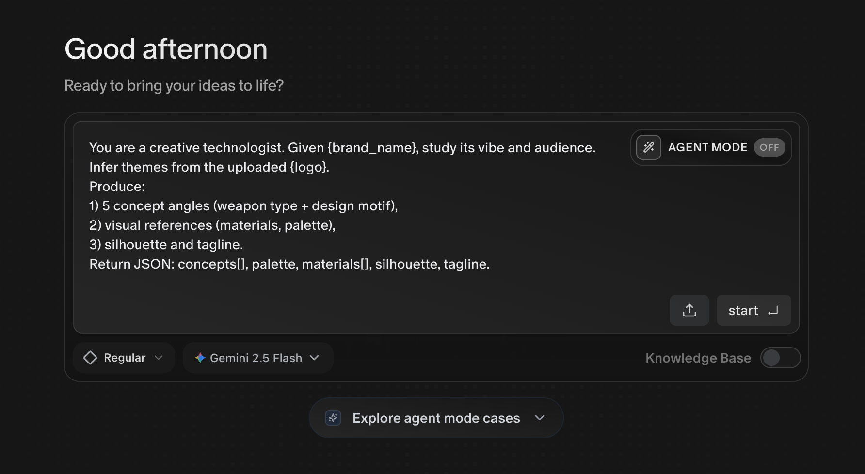 You are a creative technologist. Given {brand_name}, study its vibe and audience.