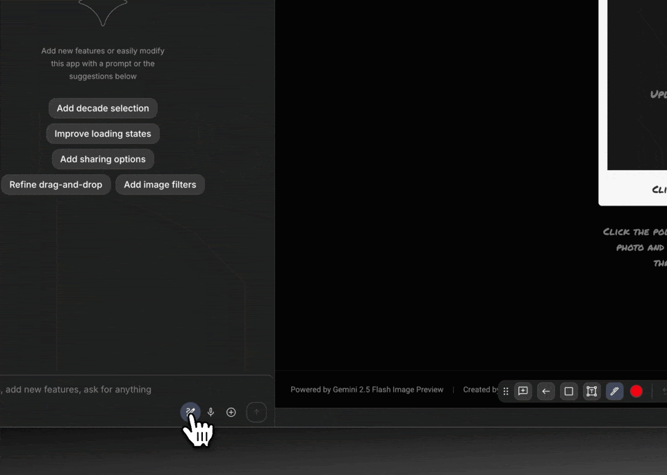 Google gave us natural language that actually works. You can say "make it feel premium" or "add a glassy effect," and it interprets the aesthetic intent behind your words.